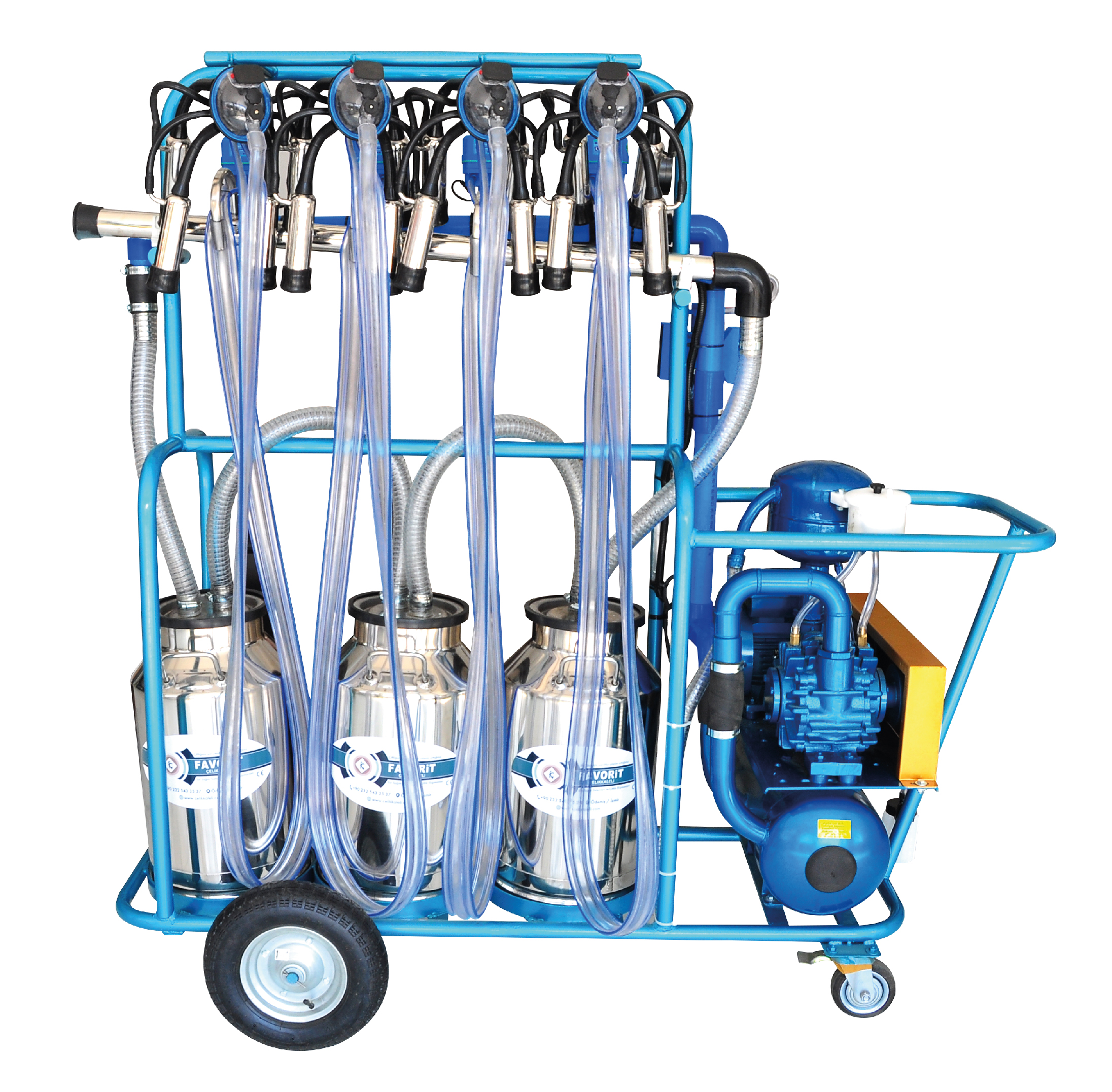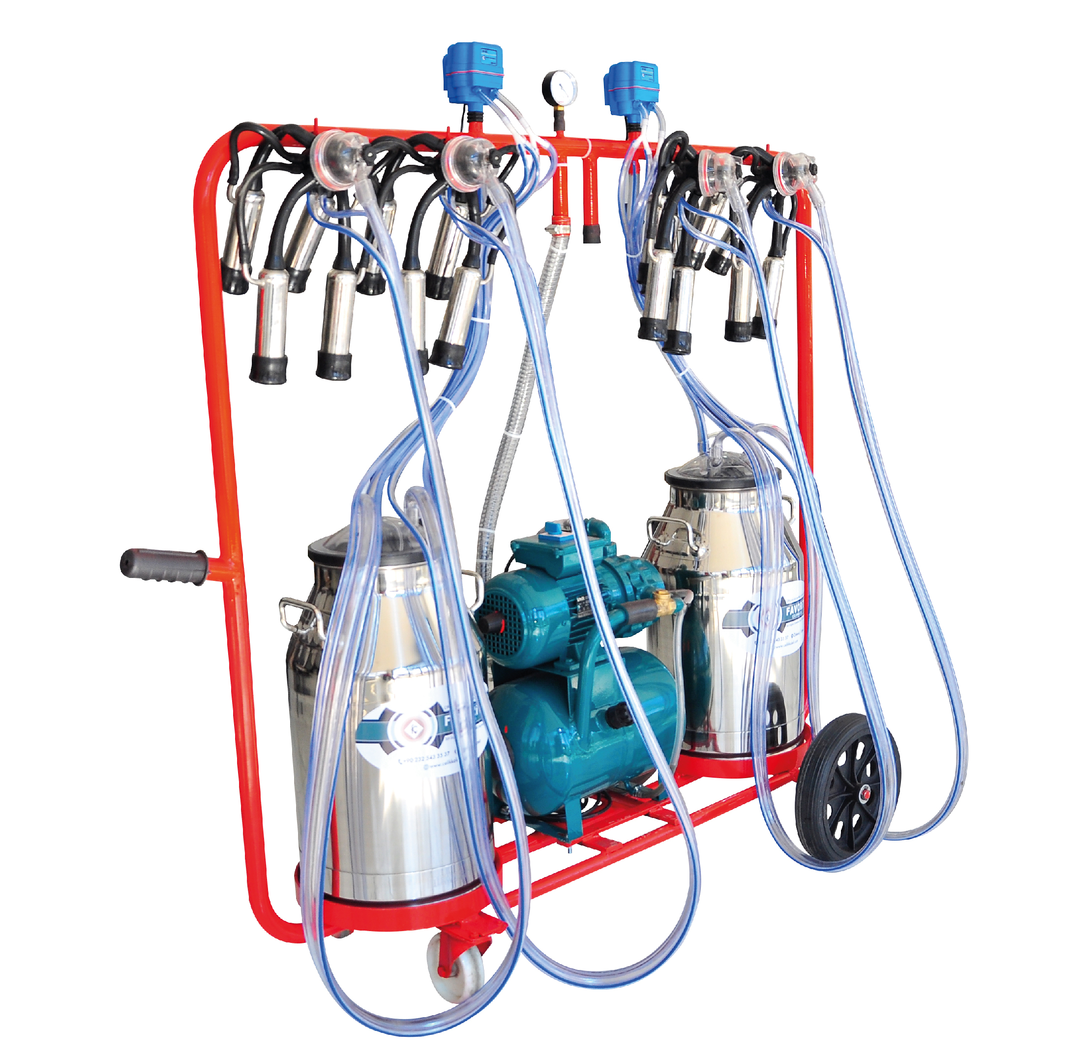 We offer mobile milking machines in many different capacities, features and designs that can meet all kind of milk producer’s special needs.