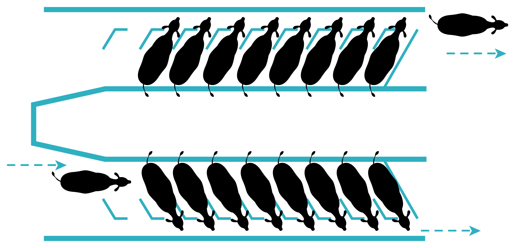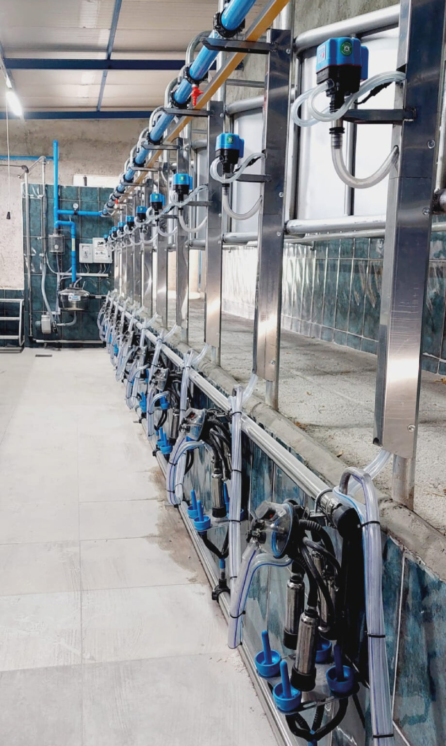 В наших доильных системах с ‘рыбьей костью’ мы располагаем коров под углом 30°-45°, что позволяет доярке доить их сбоку. Это облегчает доярке контроль над сосками и позволяет быстрее и безопаснее устанавливать доильные головки. Системы доения ‘рыбьей кости’ также вызывают меньше стресса у коров. Это естественное понимание доения, как если бы теленок сосал свою мать сбоку…